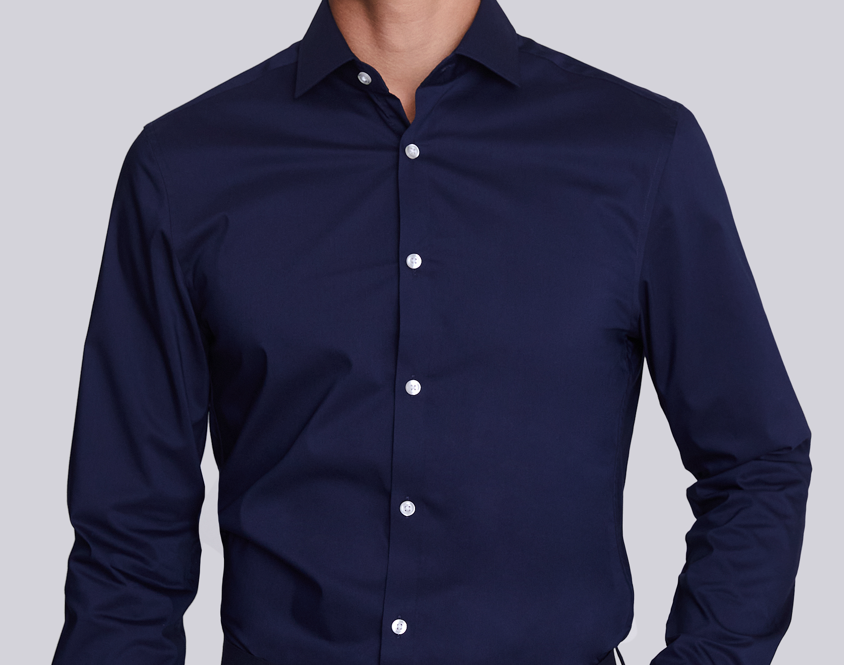 Elegante, clássica e atemporal. Essa Camisa Azul Marinho é confeccionada em tecido nobre, 100% Algodão Pima, conhecido simplesmente como o melhor algodão do mundo. Famoso por suas fibras mais longas e finas, o algodão pima peruano é reconhecido por sua ultra maciez, frescor, tramas respiráveis e qualidade excepcional – sua alta durabilidade evita o desbotamento e a formação de bolinhas. Seu colarinho possui dupla camada de entretela e barbatana interna removível, garantido um colarinho de visual rígido e imponente. Os punhos também possuem entretela dupla e tem botões duplos ajustáveis. Possui alto padrão de costura e refinado acabamento - próprios da alfaiataria sob medida. A durabilidade, a qualidade e o caimento perfeito são marcas registrada de nossas camisas.